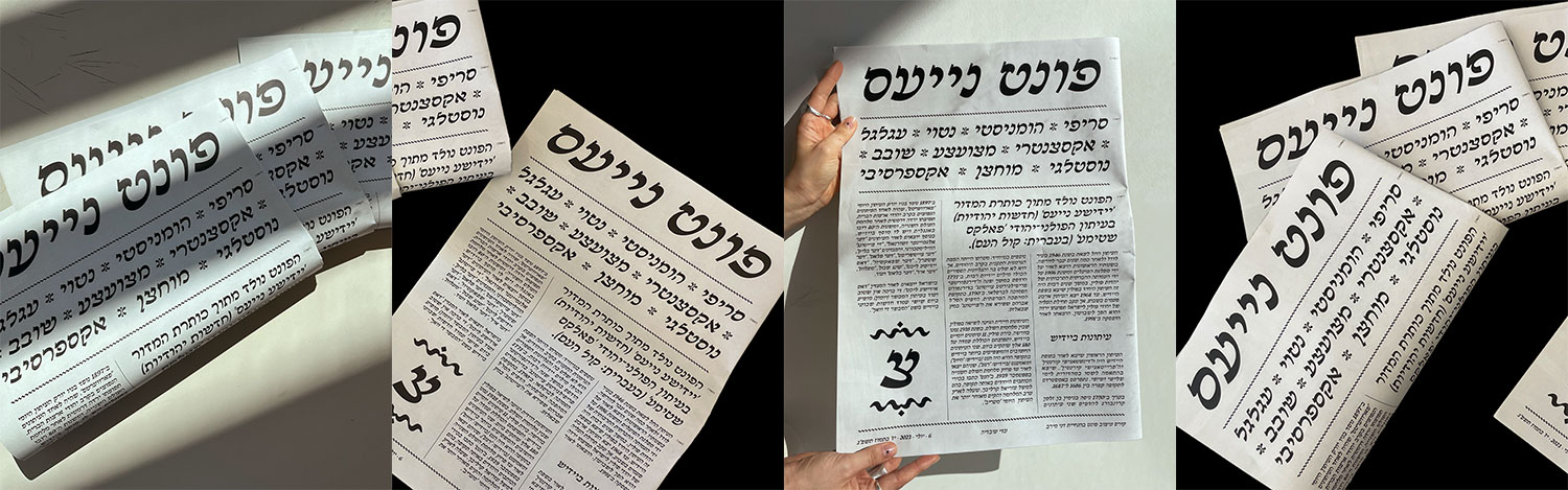 בשנה ג’ למדתי אצל דניאל גרומר קורס לטרינג שהיה מאוד משמעותי עבורי להמשך התואר והעבודה כמעצב ויוצר. בשנים א’–ב’ העיסוק בטיפוגרפיה היה מאוד מובנה ו"נכון". היה לי קשה להשתחרר מהחוקים והמגבלות שלמדנו, מתוך הכבוד והאהבה הגדולים שלי לטיפוגרפיה ובמיוחד לשפה העברית. דניאל לימד אותי לגשת לאותיות באופן קליל יותר, לא לקחת את כל העניין יותר מדי ברצינות, להשתטות לפעמים ולהרשות לעצמי ליצור מתוך הנאה.